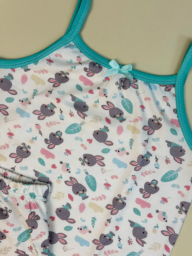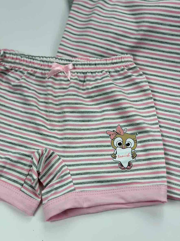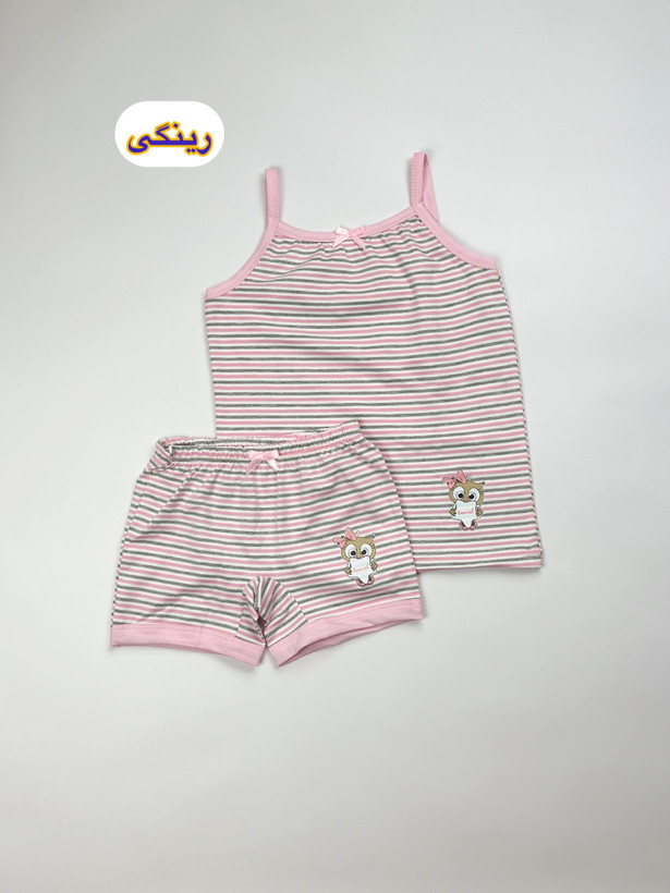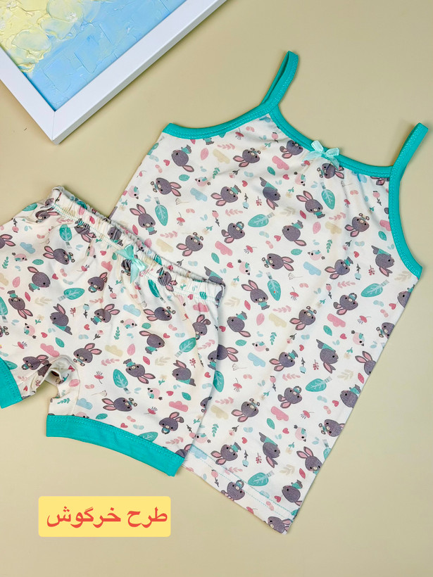 📌 سایز۳: پهنا از زیر بغل ۳۰،قد رکابی۴۳،عرض کمر۲۳،فاق۲۰، قد شورت۲۳،عرض ران۱۷
