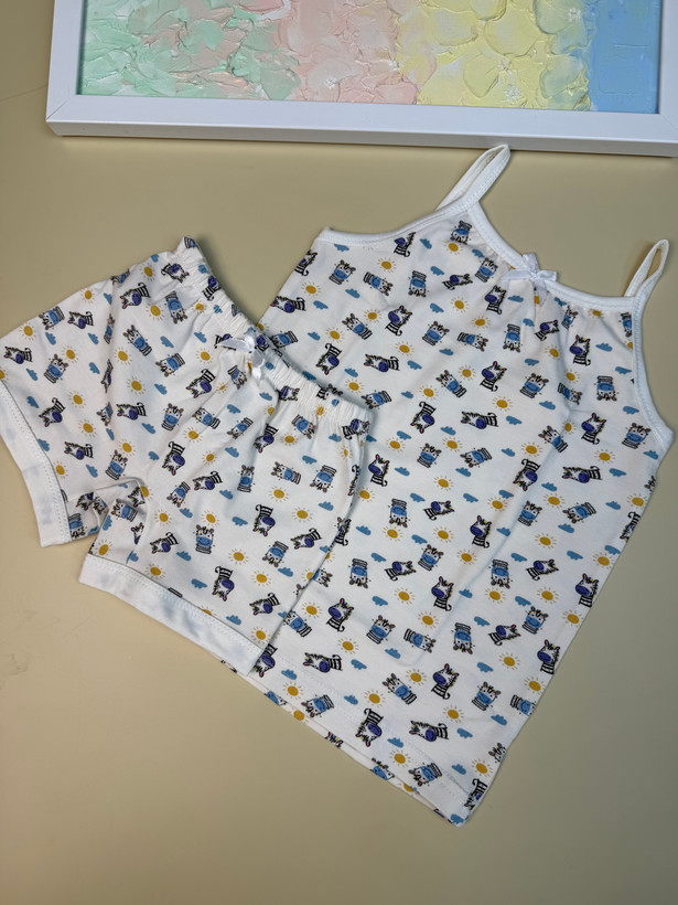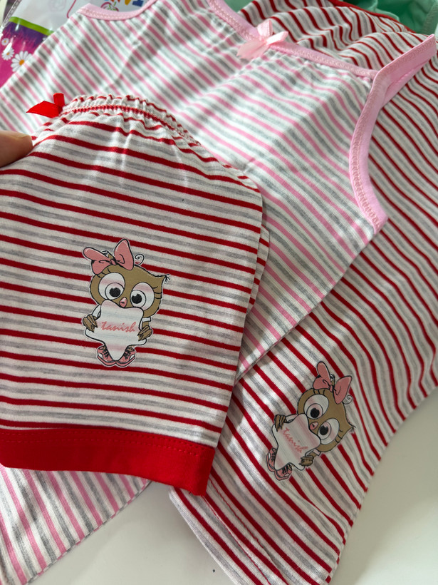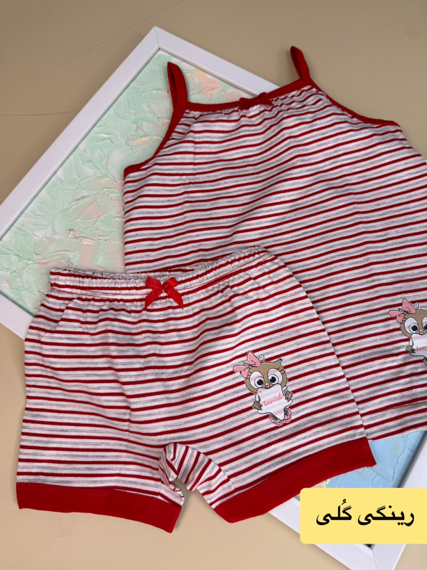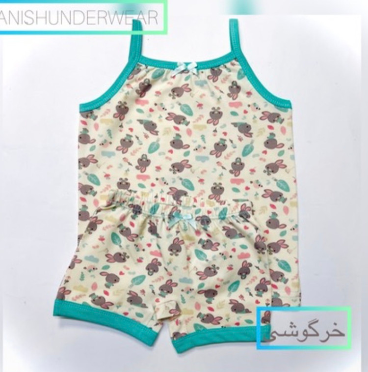 📌 سایز۴: پهنا از زیر بغل ۳۲،قد رکابی۴۷،عرض کمر۲۵،فاق۲۱ قد شورت۲۵،عرض ران۱۹